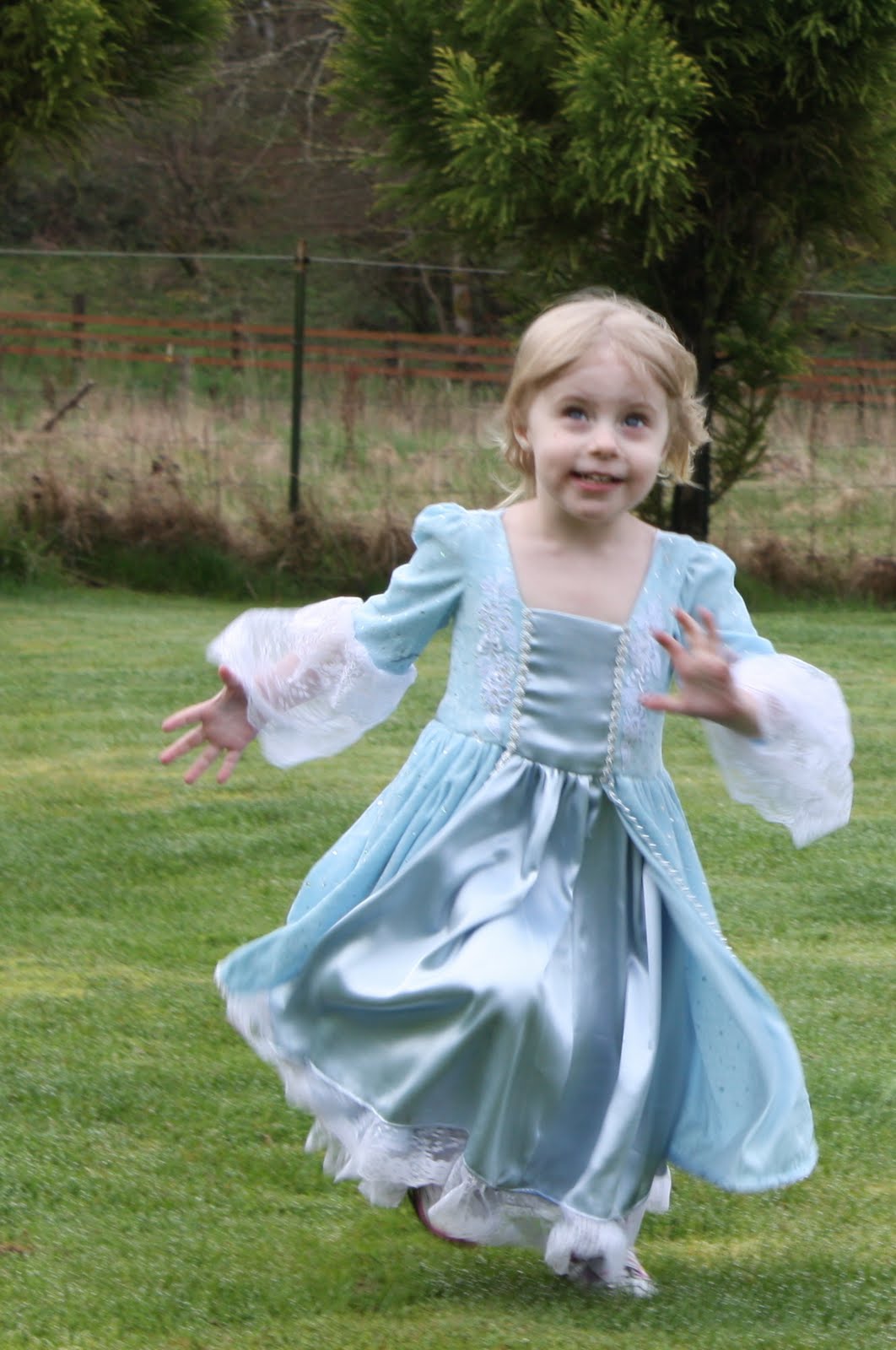 I never had much in the way of dress up clothes as a child. Thankfully, my children have plenty. Hahaha...What was that about never forcing my children to live my dreams? They actually don't play dress up as often as I would have, but oh well. Some of the costumes grandma has made them makes me jealous. Here are the princess dress my girls got from grandma for Christmas. I've been waiting for the grass to become green again before taking pictures.